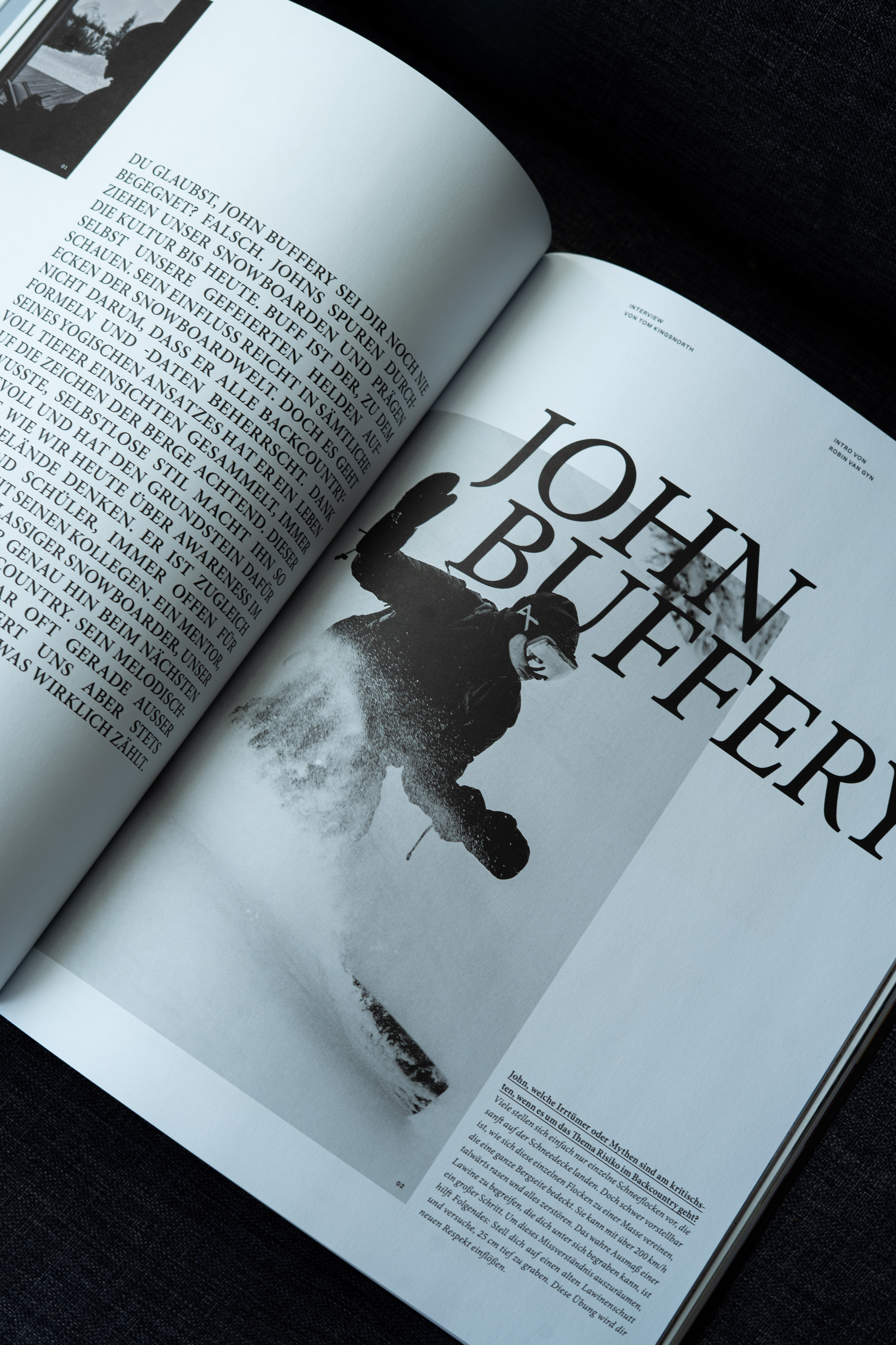 Zwei Schriften bilden die typografische Basis des Magazins: eine Serifenschrift und eine dazu passende Sans Serif. Diese Kombination schafft einen ruhigen, hochwertigen Rahmen und gibt jeder Ausgabe eine erwachsenere editoriale Anmutung.